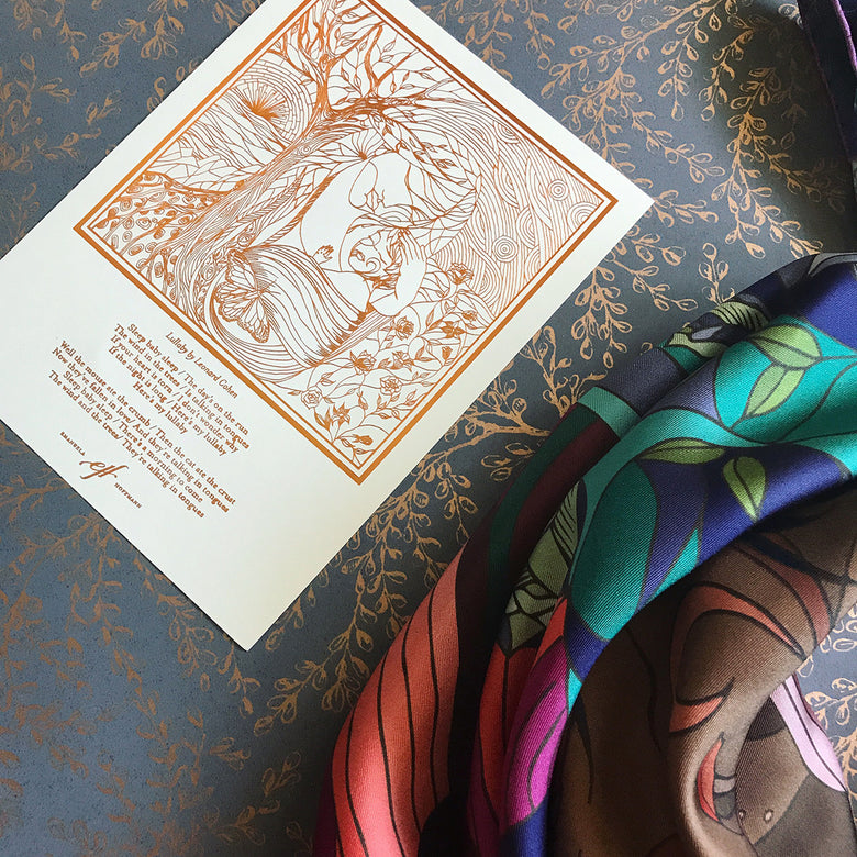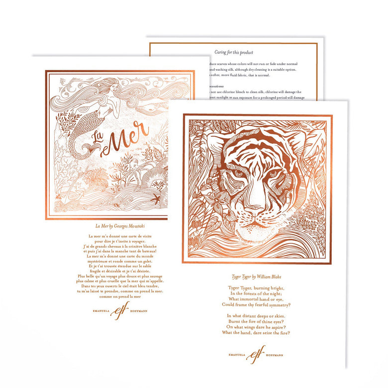 The scarf design and the inspiration poem are printed on the cards, to keep as a memento or use for correspondence!